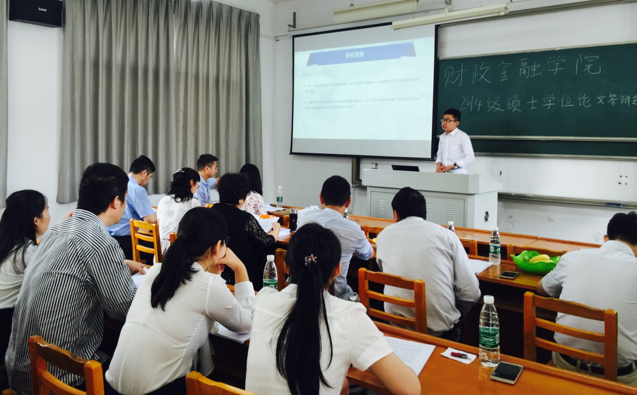 在答辩委员会主席主持下,答辩会严格按照硕士论文答辩要求与程序进行,氛围紧张而热烈。答辩过程分为陈述与作答两个环节。答辩学生依次上台以PPT形式简洁明了的向答辩委员会讲解论文的选题背景及意义、研究内容、研究方法等,答辩委员会对答辩论文的选题内容、论文结构及写作规范等方面做了专业而深入的提问与全面考察。最终,经答辩委员会评议和一致表决,认为答辩论文已达到硕士学位论文水平,同意通过答辩并建议授予经济学硕士学位。