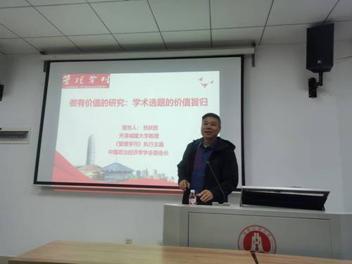 129日上午,金融工程系特邀《管理学刊》执行主编、天津城建大学张跃胜教授在湘江楼在湘江楼A511会议室举行了一场学术讲座,主题为“做有价值的研究:学术选题的价值旨归”,讲座由金融工程专业负责人刘凤根教授主持,学院教师和研究生参加了讲座。