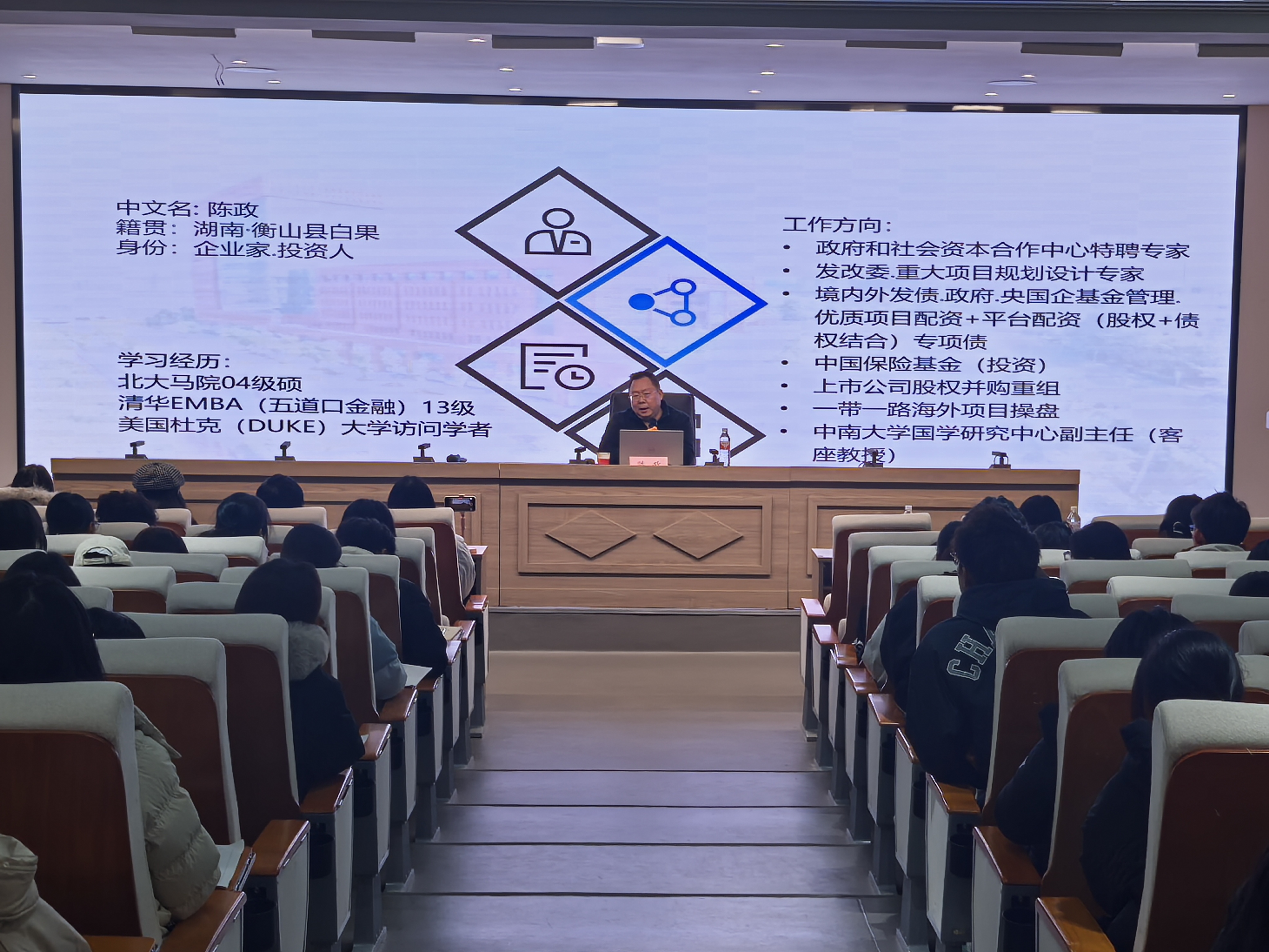 12月12日,工商管理学院(MBA学院)在北校区追光楼3201阶梯教室举办湖南工商大学第250期麓山大讲堂之企业家与创新论坛。本次论坛荣幸邀请到陈政作为主讲嘉宾。