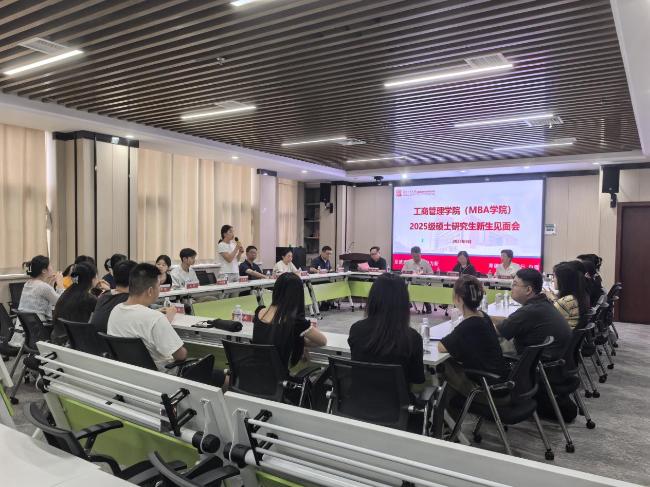 9月13日上午10时,工商管理学院(MBA学院)2025级研究生入学教育暨新生见面会在湘江楼A801顺利举行。执行院长周艳菊、副院长刘嫦娥、副院长戴博、研究生干事、辅导员及2025级全体研究生新生参会,会议由党委副书记曾平主持。